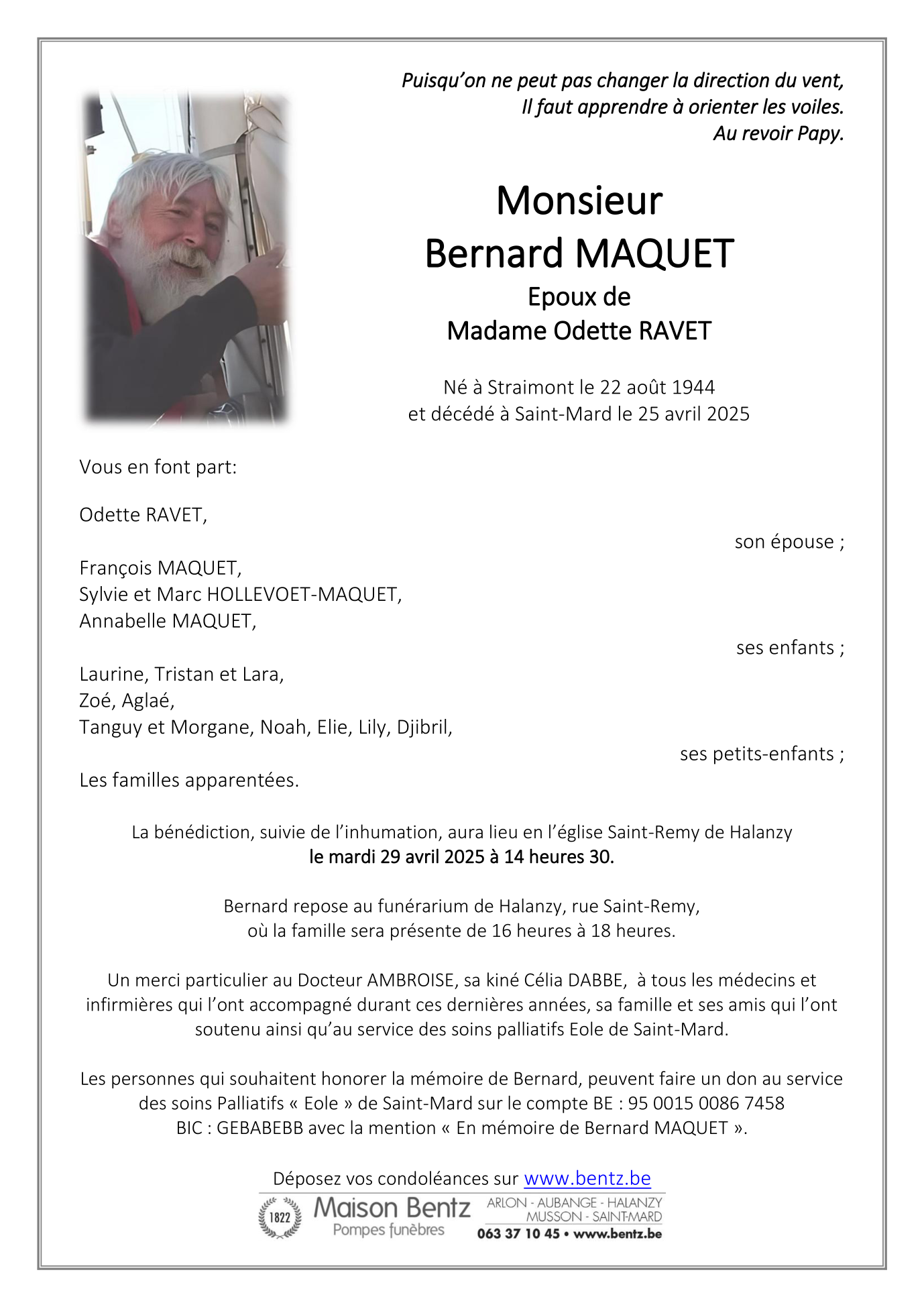 Décédé à Saint-Mard (6762) le vendredi 25 avril 2025 à l'âge de 80 ans