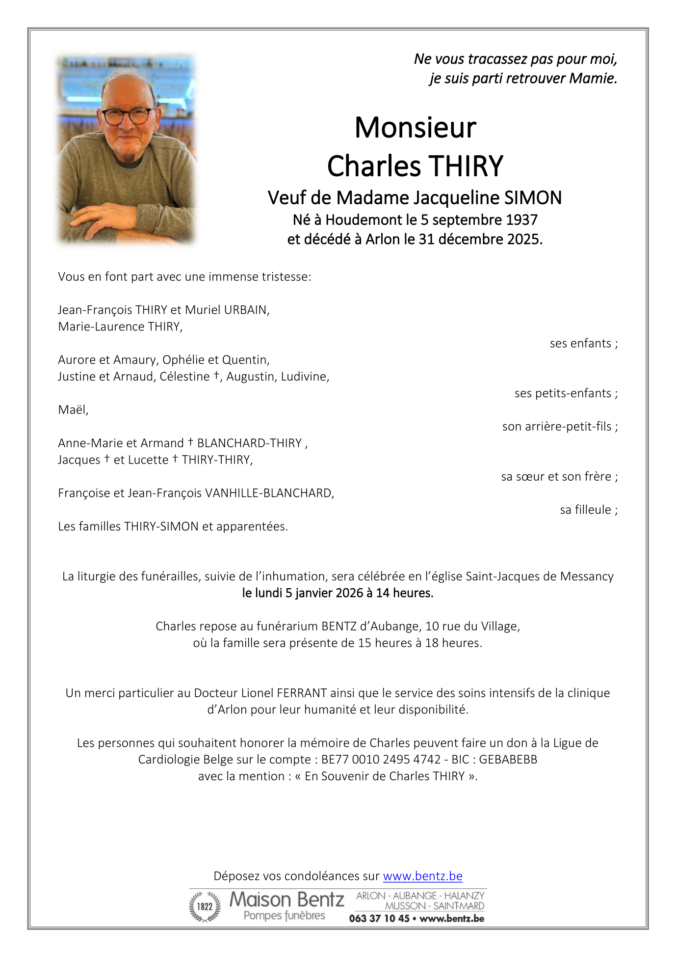 Décédé à Arlon (6700) le mercredi 31 décembre 2025 à l'âge de 88 ans
